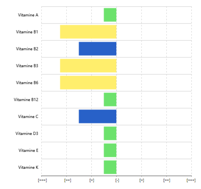 Resultaat van een vitamine meting. Dit is een voorbeeld van 1 van de 36 analyse rapporten